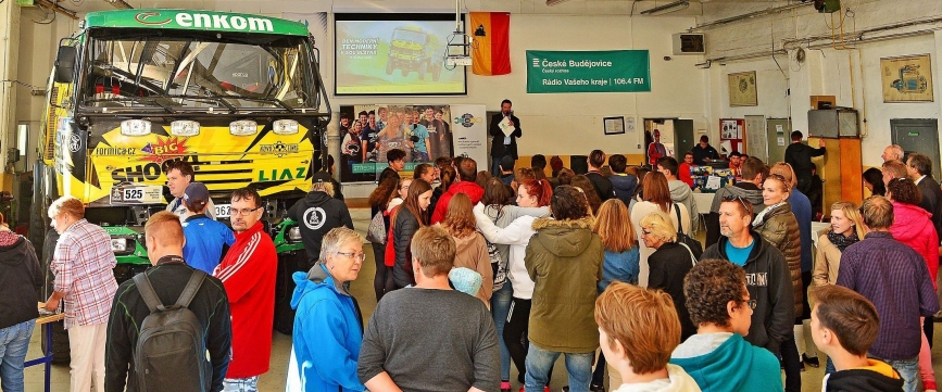 Centrum dění bylo ve velké opravárenské hale traktorů. Sem přijel i pilot Martin Macík se závodním kamionem Liaz Dakar, který byl hlavní atrakcí pro většinu návštěvníků. Spolu s Petrem Luskem, oceňovaným fotografem Rallye Dakar, celý den rozdávali podpisy závodním nadšencům. Během dne nás provázel moderátor Luboš Voráček z Českého rozhlasu České Budějovice.