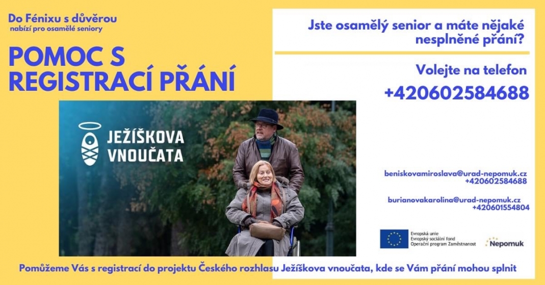 Znáte seniora, kterému by mohla splnit jeho přání Ježíškovo vnoučata?Jste senior, který bych chtěl nějaké přání splnit, ale neví jak se zaregistrovat?
