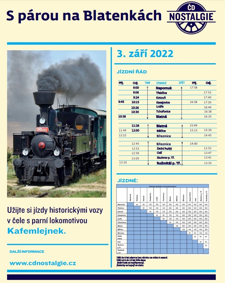 Jízdy historických vlaků - S párou na Blatenkách 3.9.2022