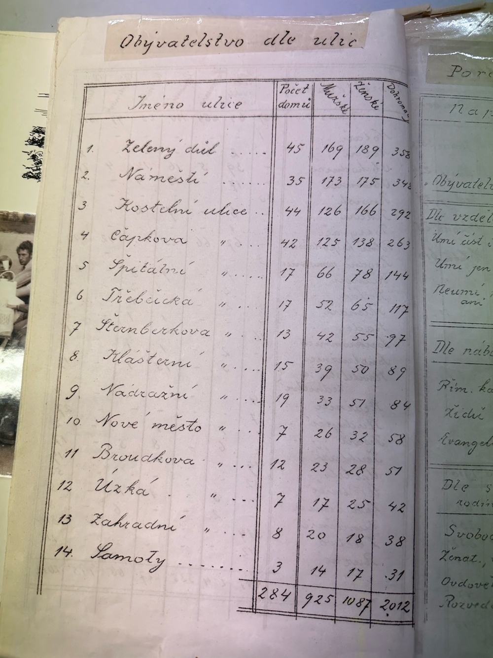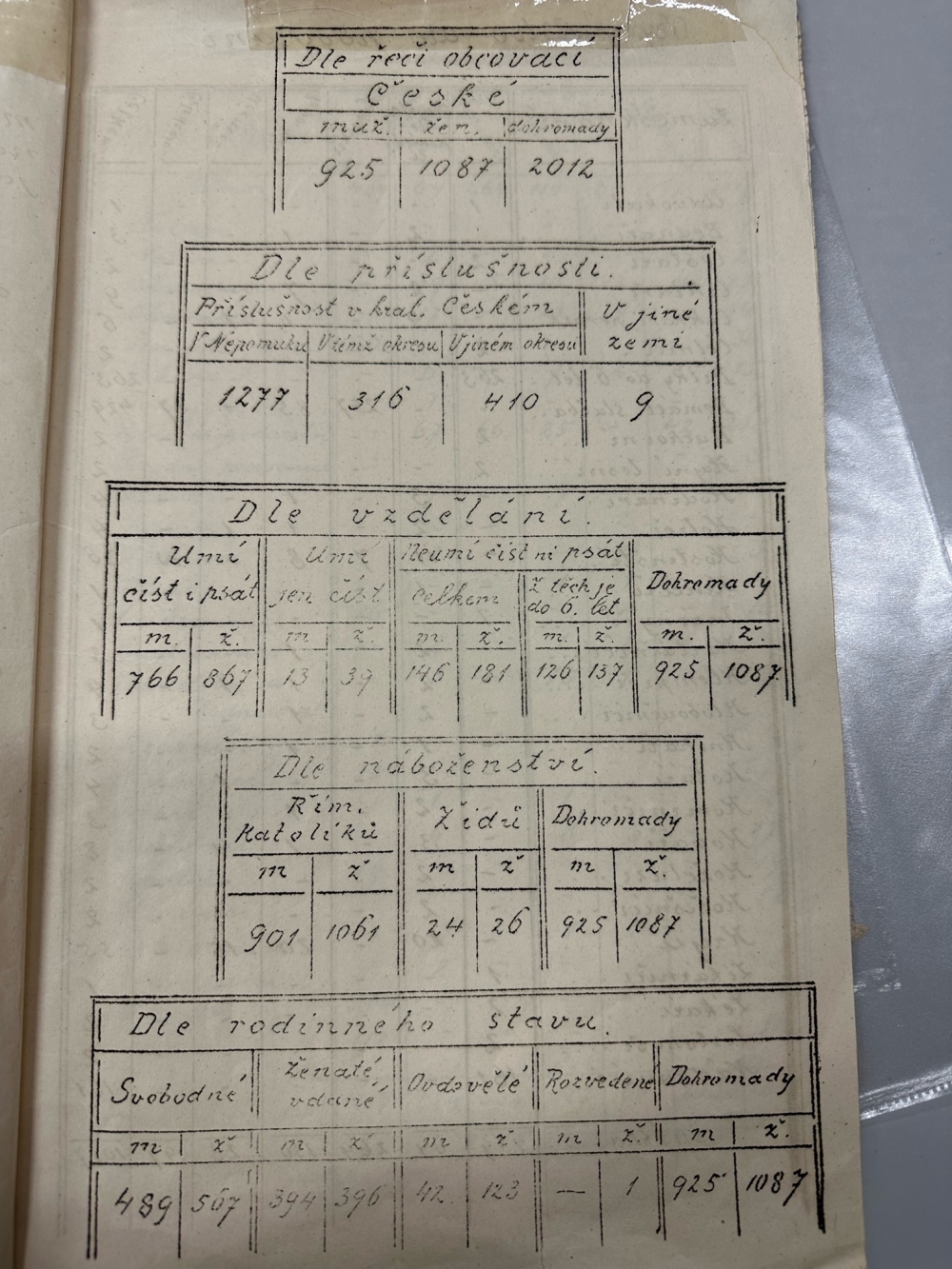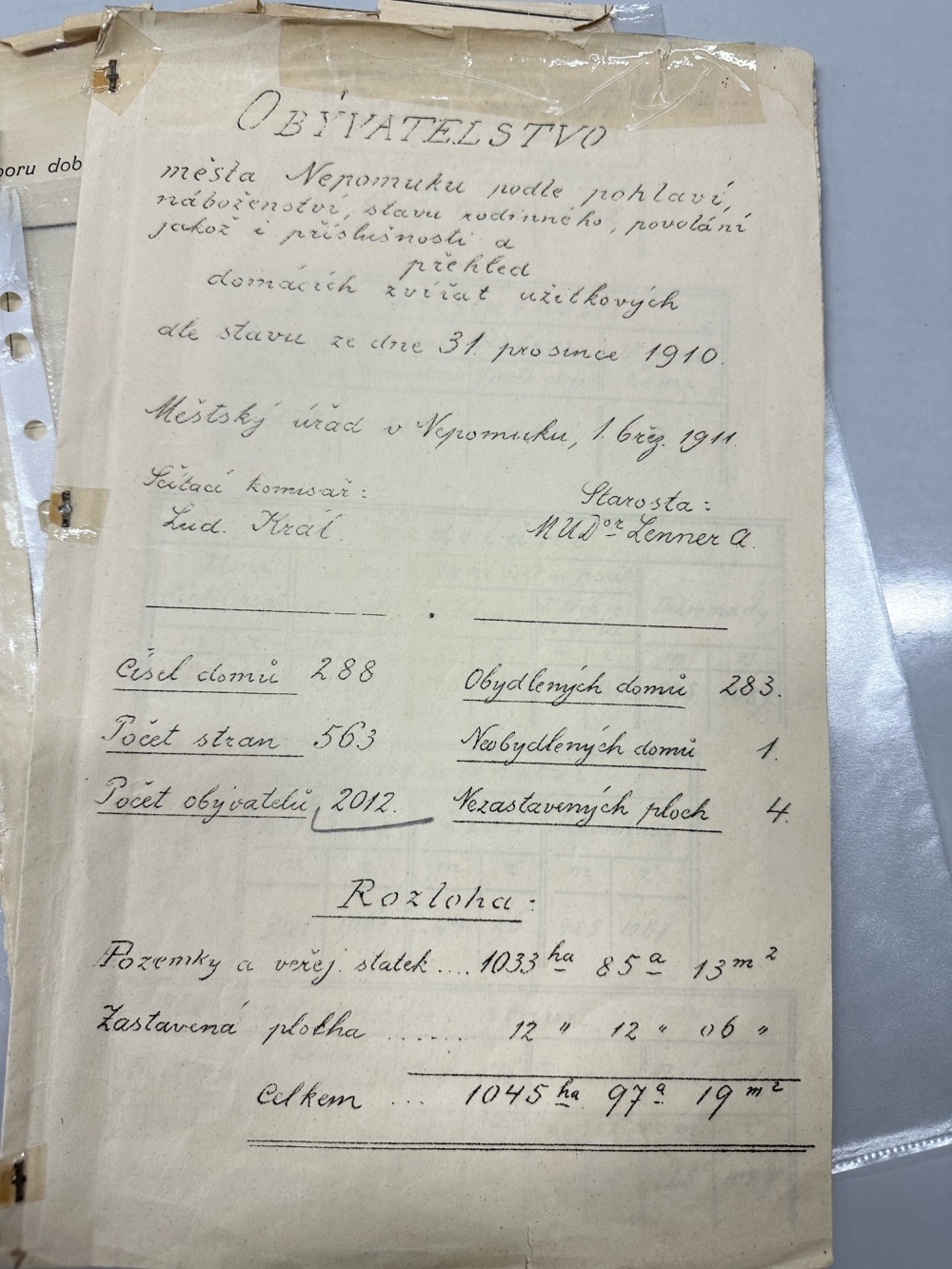 Nepomucká statistika z roku 1910