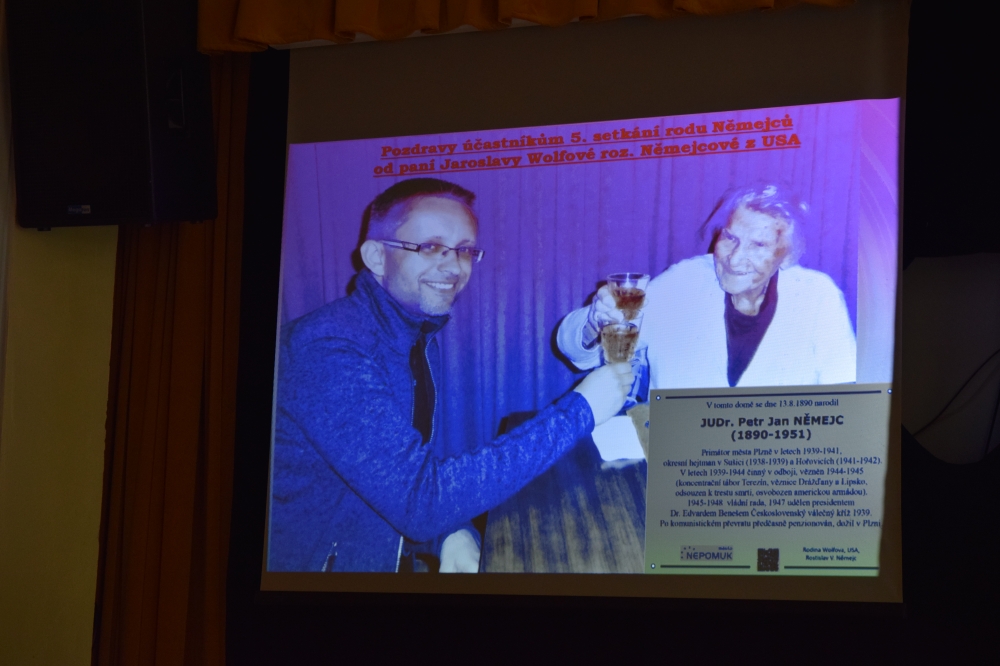 Účastníci také odhalili pamětní desku Petru J. Němejcovi (1890-1951), místnímu rodákovi, plzeňskému primátorovi a hrdinovi protinacistického odboje. Součástí setkání byla přednáška shrnující nové poznatky z historie rodu a prezentace objevené šlechtické větve rodu Němejců v Rakousku (Edler von Nemec).