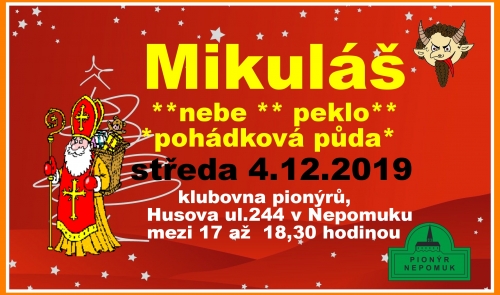 Navštivte nebe, peklo a pohádkovou půdu u nás v pionýrské klubovně. Připravte si bá sničku, písničku, obrázek určitě od nás dostanete dáreček.