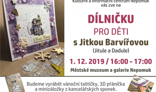 Tradiční adventní trh a rozsvícení vánočního stromu - bohatý doprovodný program (hudební vystoupení, pohádka pro děti, workshopy, …), od 14.00 do 19.00 hodin, náměstí A. Němejce.