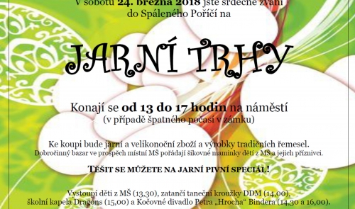 Bude možné si vybraz z množství jarního i velikonočního zboží. Účast přislíbili výrobci a prodejci velikonočních dekorací a nejrůzněji zdobených vajíček, keramiky (drobné, užitkové i zahradní), autorské bižuterie, pletených věcí, koření, medu a medových výrobků...
