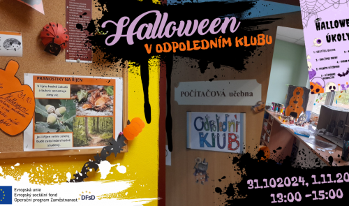 Odpolední klub otevírá dveře halloweenské zábavě pro všechny zvídavé děti. Přijďte se k nám podívat, splnit zajímavé úkoly a seznámit se s náplní a posláním Odpoledního klubu.