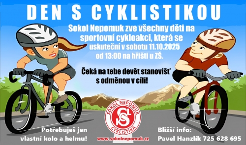 Sokol Nepomuk zve všechny děti na sportovní cykloakci s devíti stanovišti a odměnou v cíli.