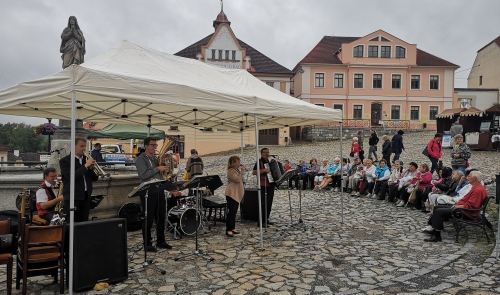 potravinový a řemeslný trh s živou hudbou (Duo Harhou) a pohádkou (Rozpustilé bajky)