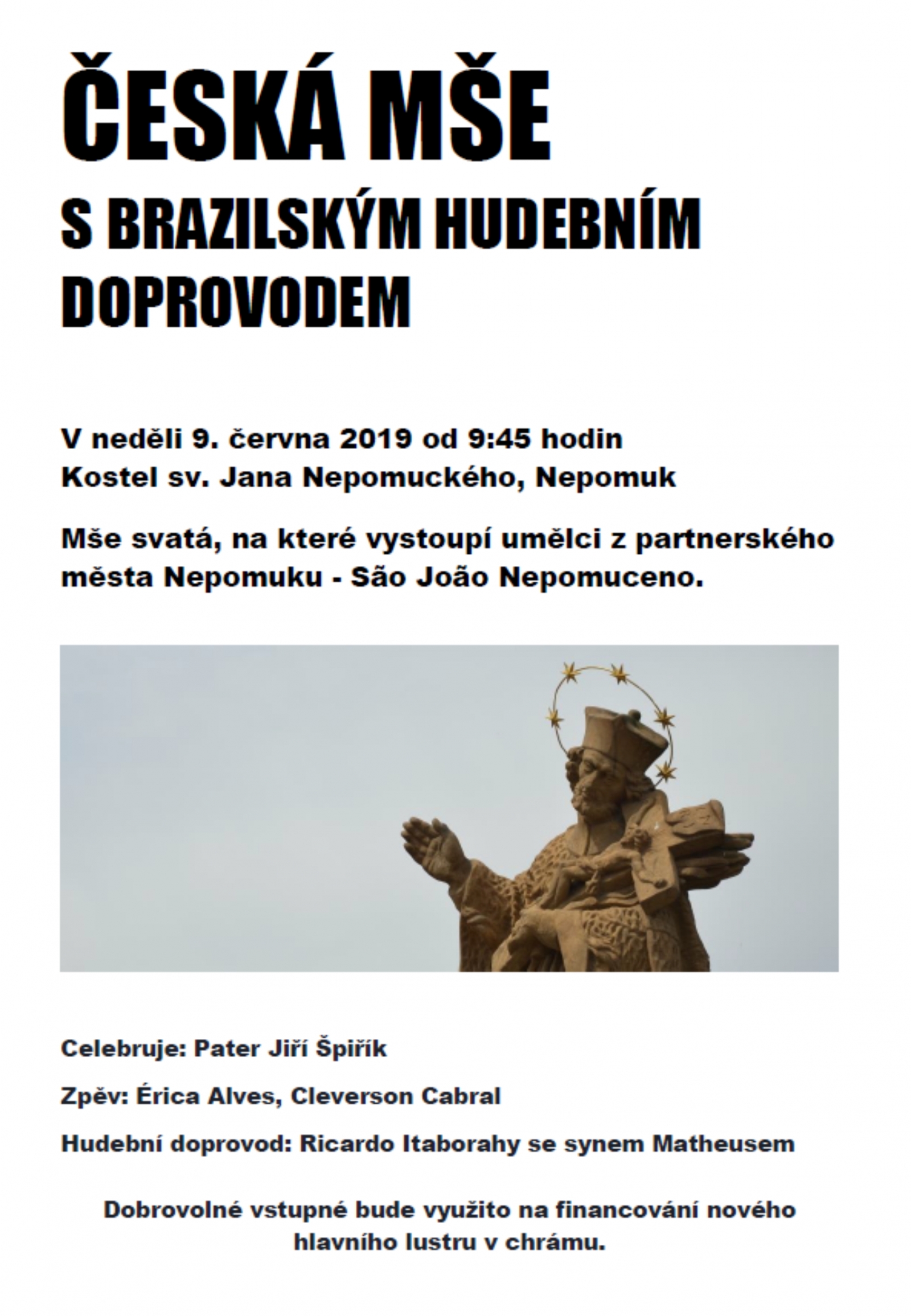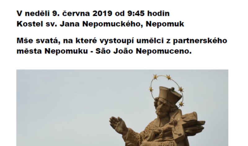 na mši vystoupí umělci z partnerského města Sao Jao Nepomuceno
