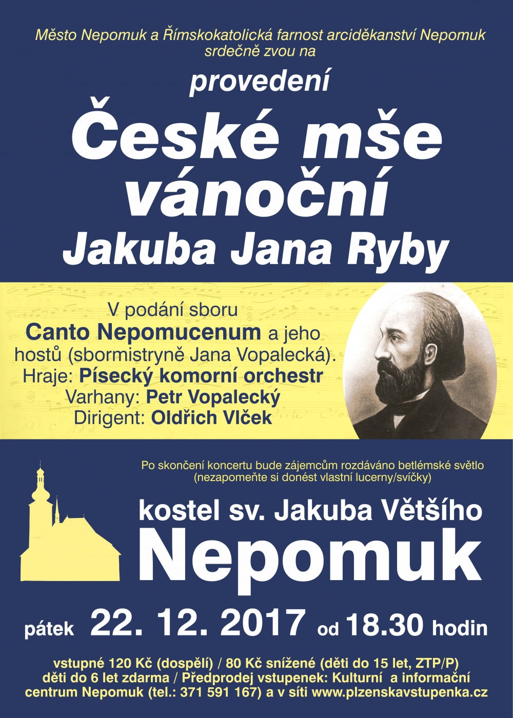 v pátek 22. prosince 2017 od 18:30 hod. v kostele sv.Jakuba v Nepomuku (Přesanické náměstí)