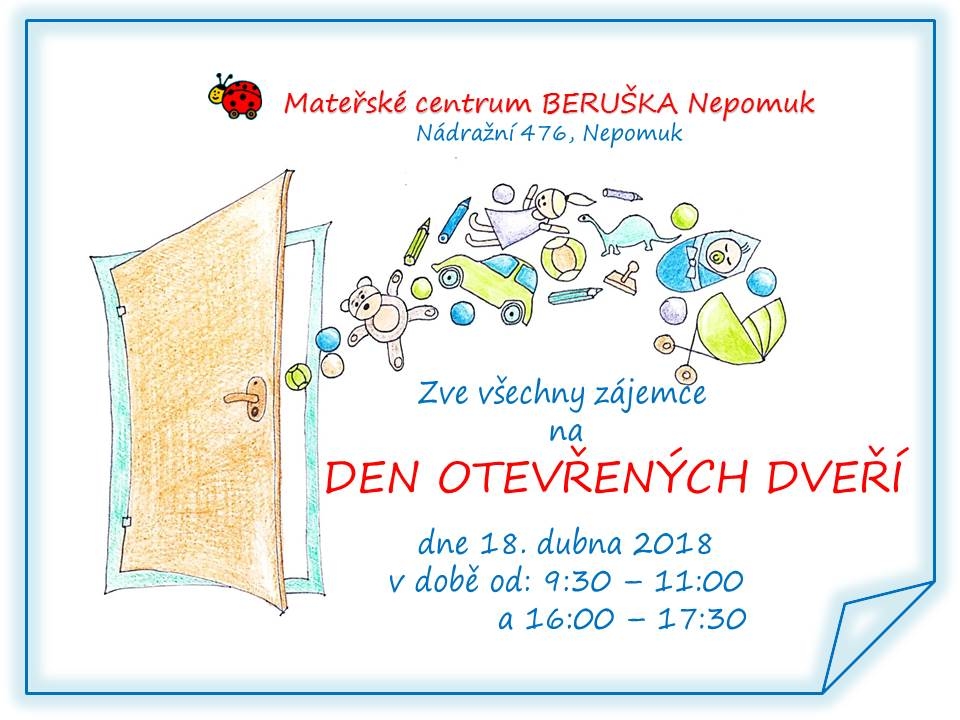 Milé maminky a příznivci MC Beruška, zveme Vás na den otevřených dveří! Přijďte si prohlédnout prostory, zeptat se na vše, co Vás zajímá, posedět, pohrát nebo vytvořit si malou drobnost pro radost!