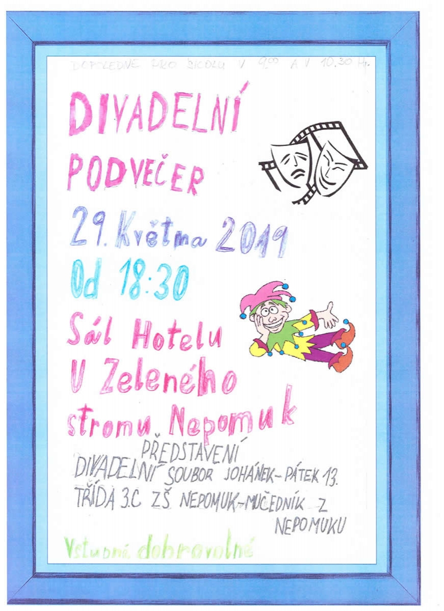 zahrají: divadelní soubor Johánek - Pátek 13. a třída 3. C ZŠ Nepomuk - Mučedník z Nepomuku