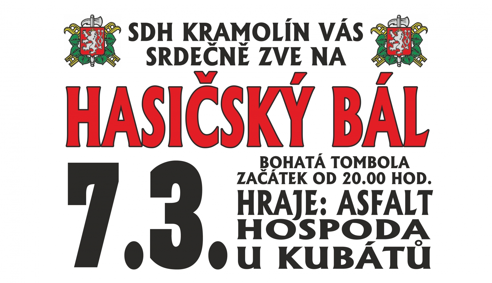 hraje Asfalt, pořádá SDH Kramolín, bohatá tombola