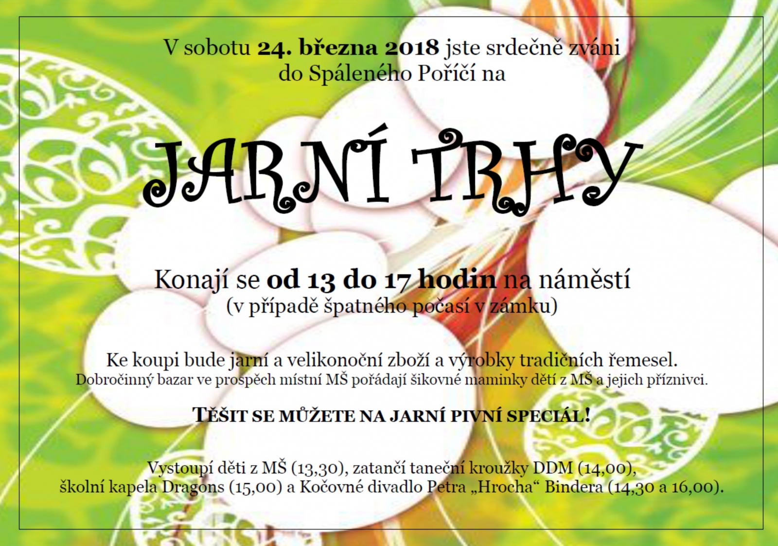 Info pro prodejce - organizaci trhů má na starosti p. Ivana Paseková, 605 368 410, Infocentrum@spaleneporici.cz