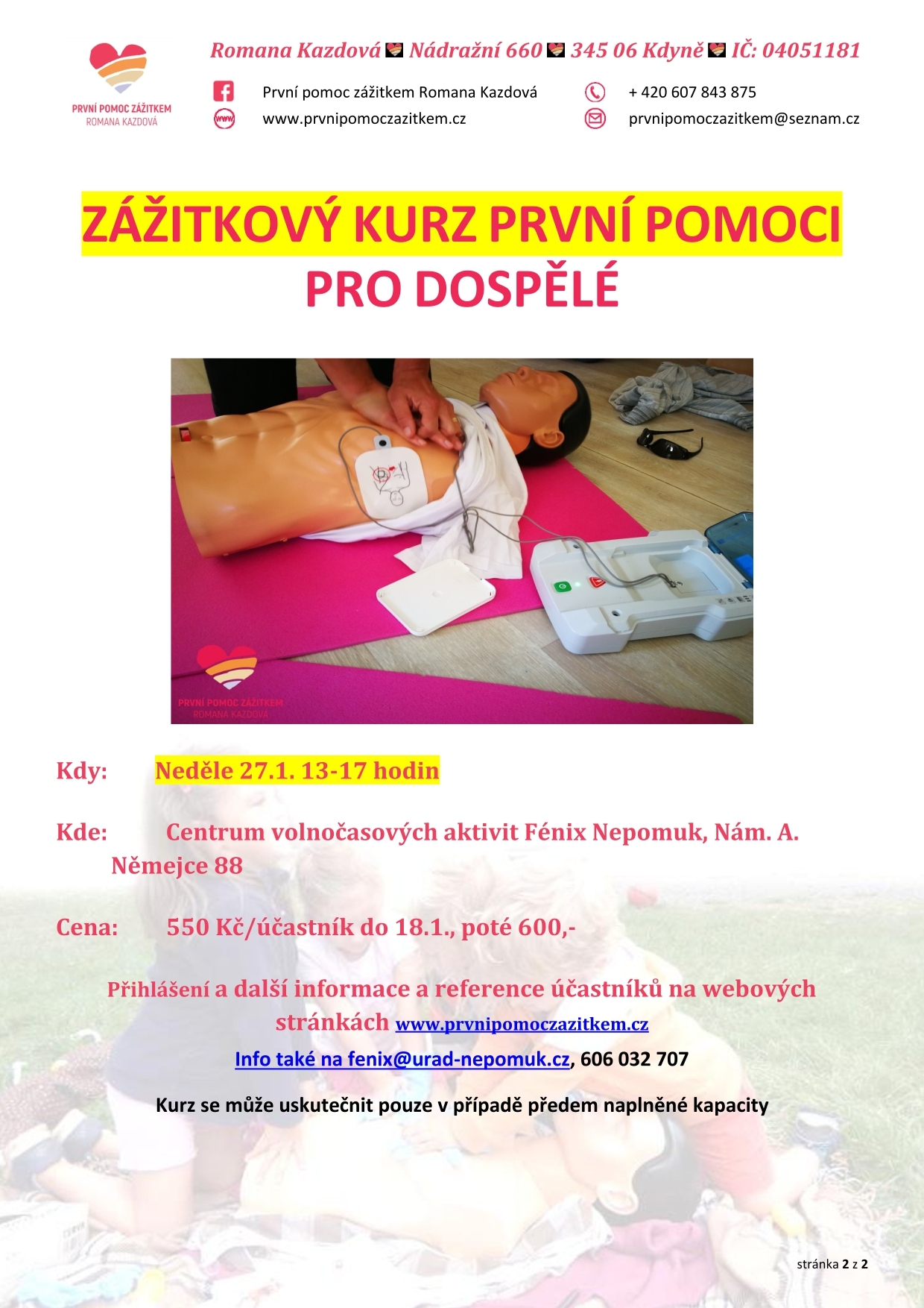| Web: | https://www.fenix-nepomuk.cz/events/zazitkovy-seminar-prvni-pomoci-pro-dospele |