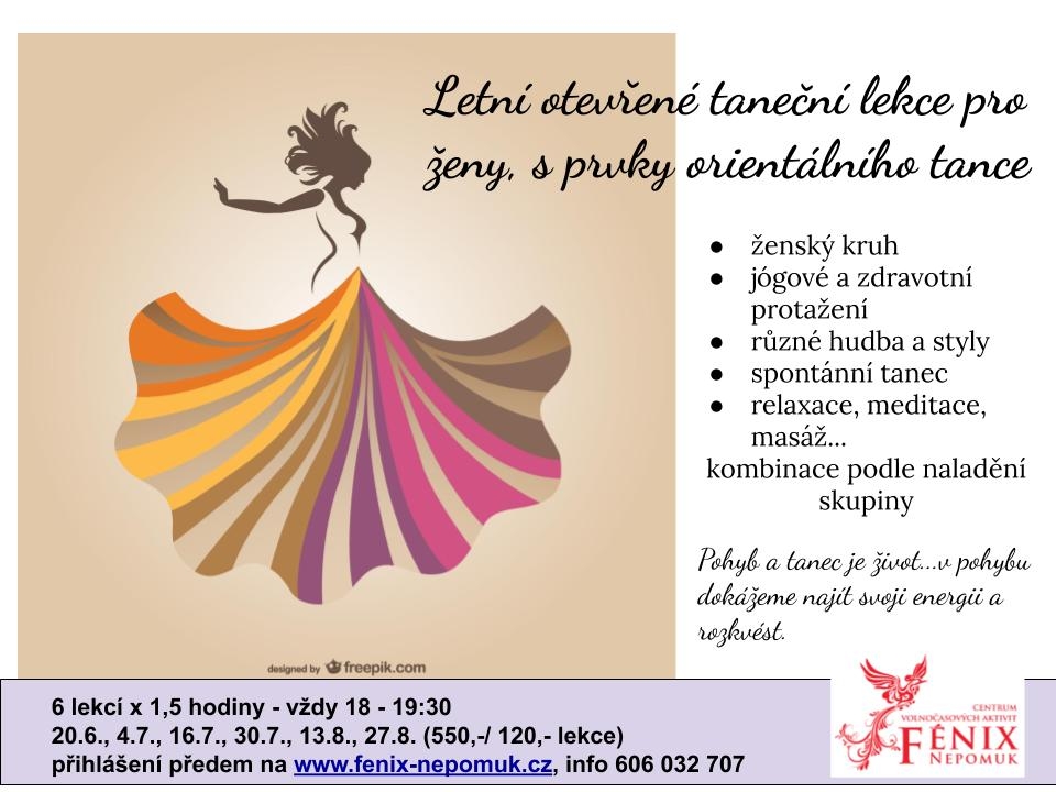 | Web: | https://www.fenix-nepomuk.cz/events/letni-tanecni-lekce-s-prvky-orientu |