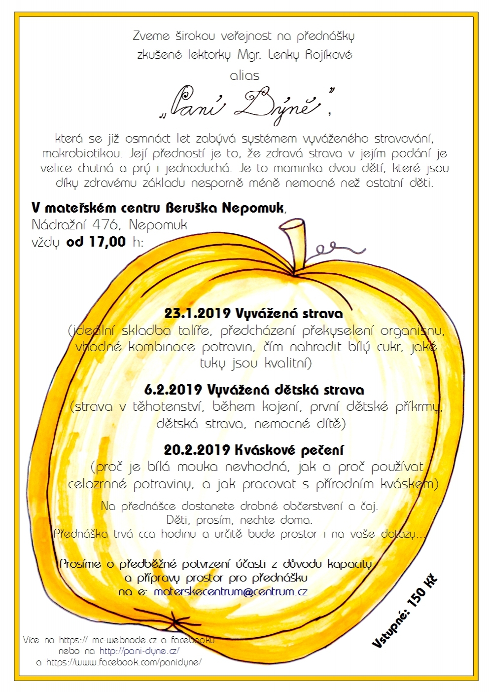 | Místo konání: | MC Beruška, Nádražní 476, Nepomuk Ukázat na mapě |