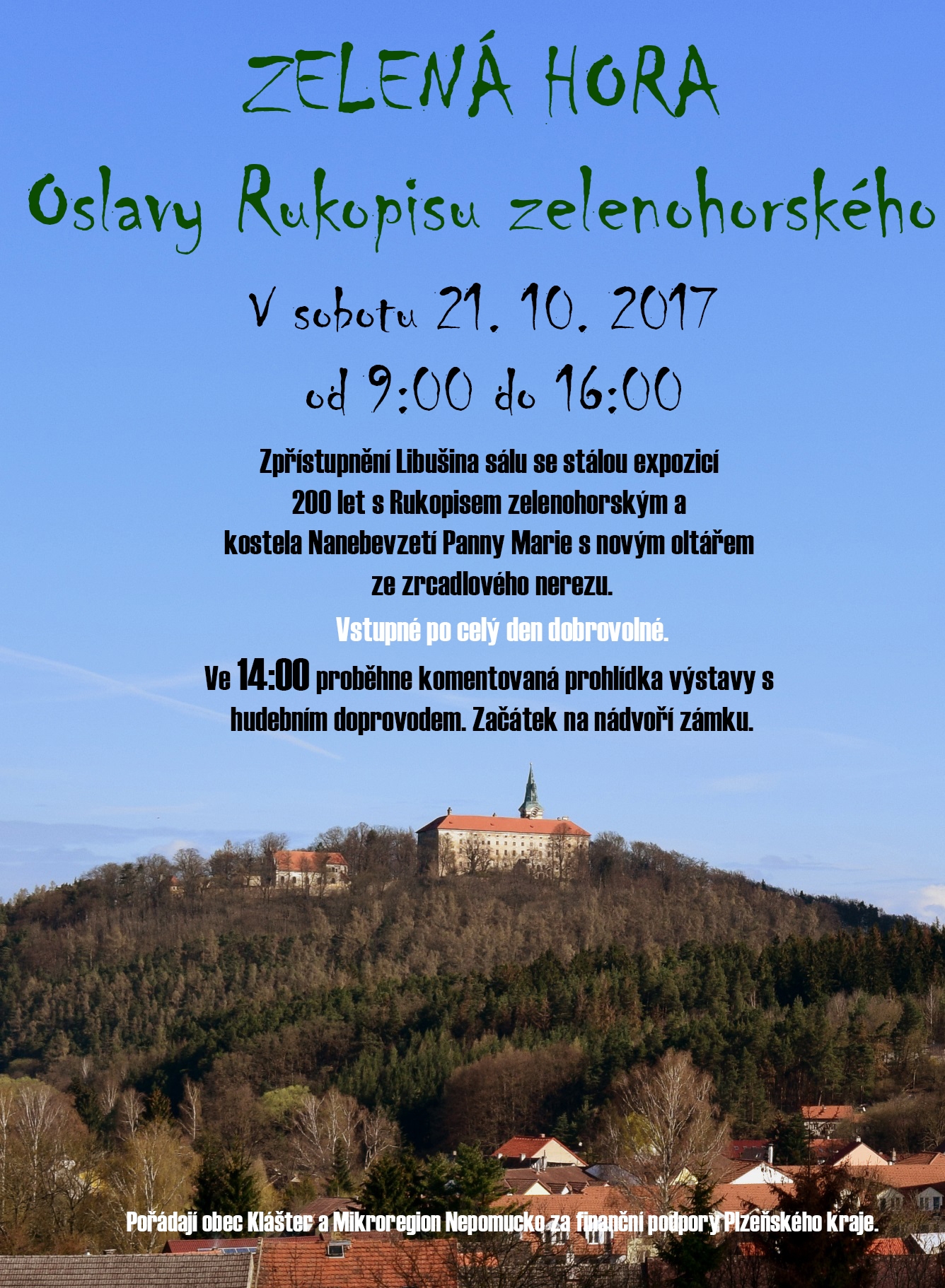 | Místo konání: | zámek Zelená Hora u Nepomuka Ukázat na mapě |
