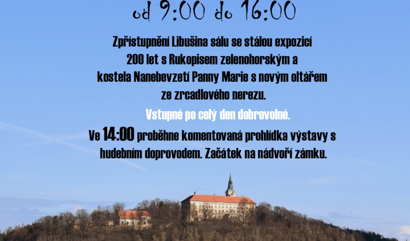 zpřístupnění Libušina sálu se stálou expozicí 200 let s Rukopisem zelenohorským