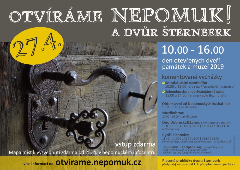 Den otevřených dveří památek a muzeí, zahájení turistické sezóny Nepomuka a Kláštera 2019.