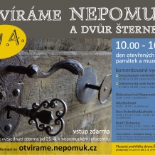 Upozornění: Vstup s průvodci na dvůr Šternberk bude zpoplatněn (plné vstupné 100 Kč, snížené 70 Kč). Předprodej časových vstupenek bude zahájen od 1. dubna (v 8:30) na plzenskavstupenka.cz a v informačním centru Nepomuk, kde bude zájemcům sděleno více informací. Upozorňujeme na ztížený přístup na vlastní nebezpečí. Výtěžek ze vstupného poputuje v plné výši na opravy dvora a zámku Zelená Hora.