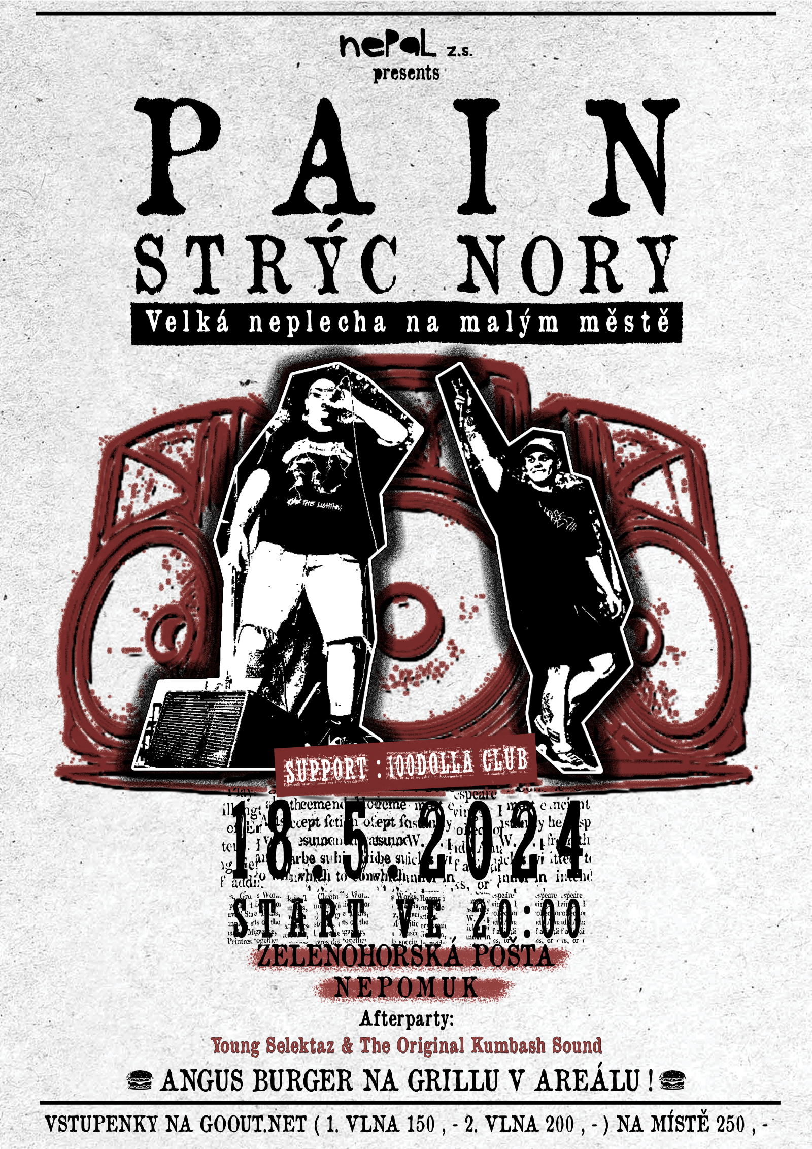 21.00 PAIN & Strýc Nory (rap) | vstupné na místě 250 Kč, předprodej na goout / 23.00 Young Selektaz & The Original Kumbash Sound (reggae, dub) | zdarma