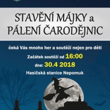 SDH Nepomuk připravilo bohatý program - soutěže pro děti, opékání vuřtů, pálení čarodějnice, živá hudba, grilované prase, občerstvení zajištěno