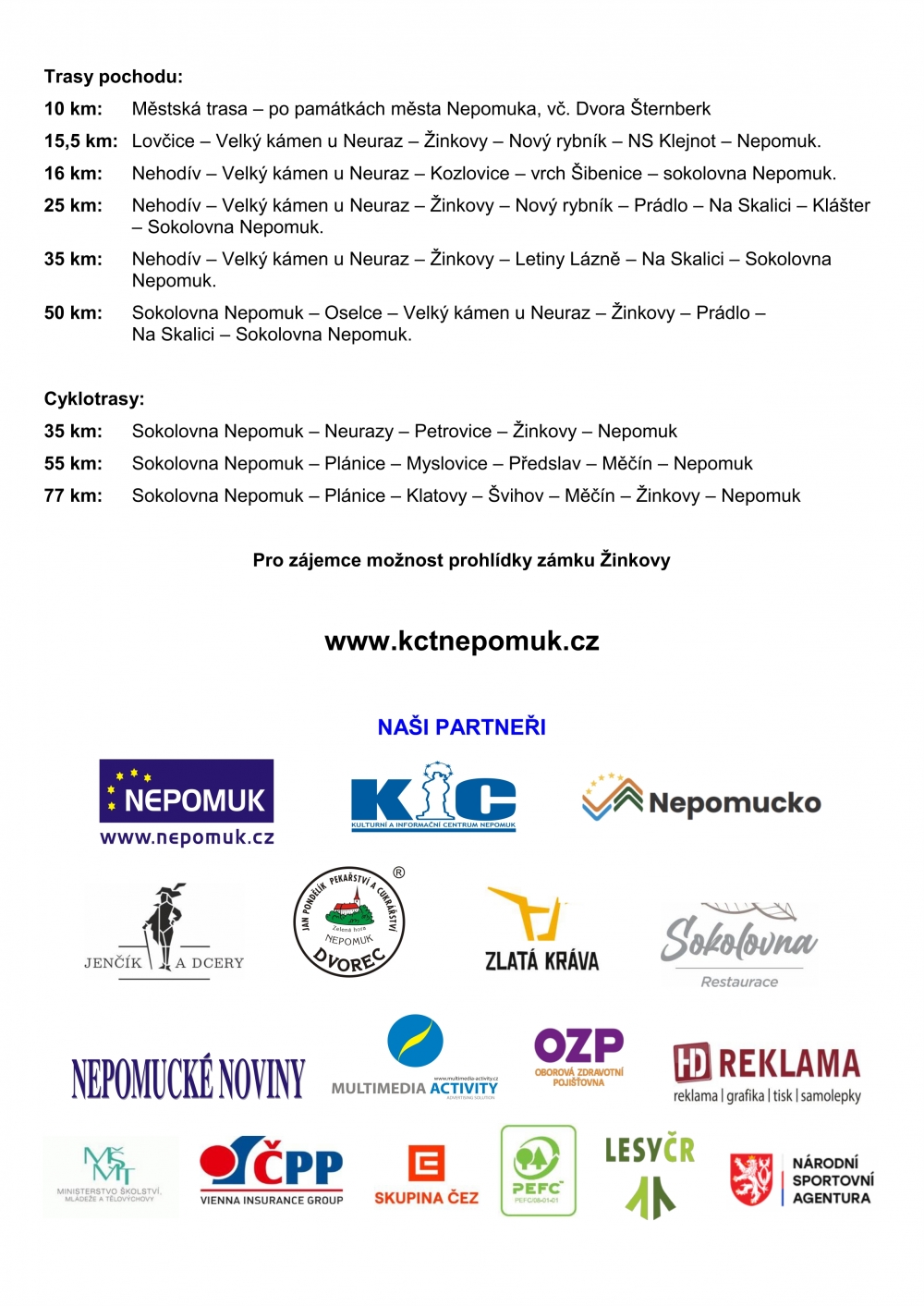 Start: Sokolovna Nepomuk 7 - 10.30 hod. Cíl: Sokolovna Nepomuk do 18 hodin