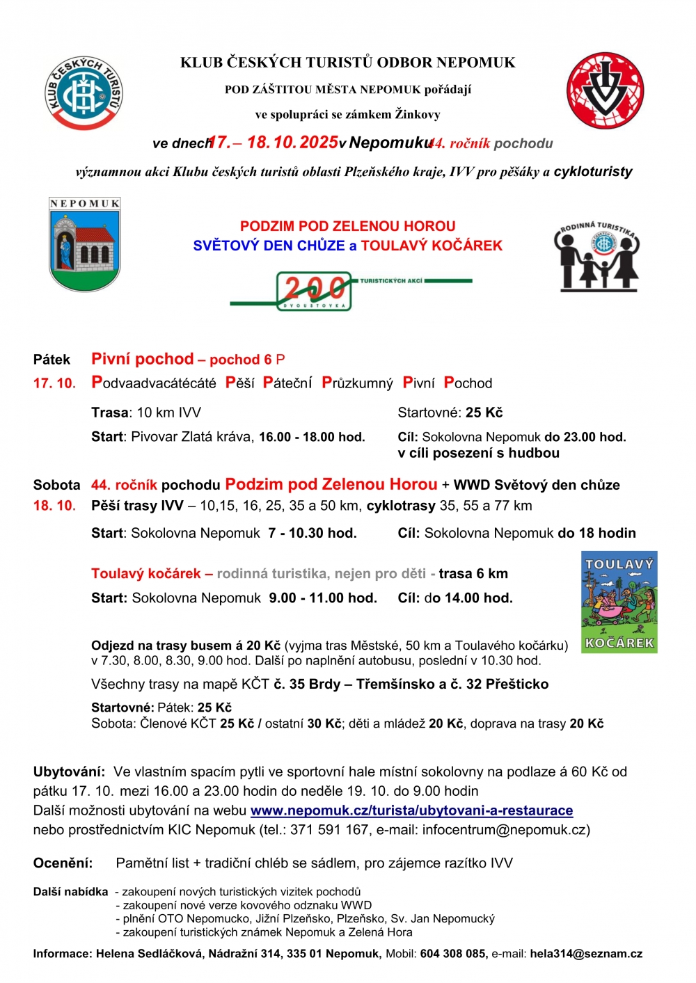 Sobota 44. ročník pochodu Podzim pod Zelenou Horou + WWD Světový den chůze