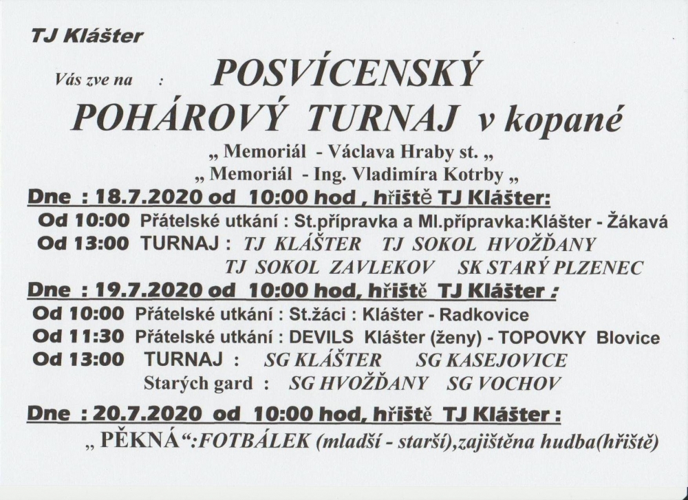 Posvícenský pohárový turnaj v kopané v Klášteře