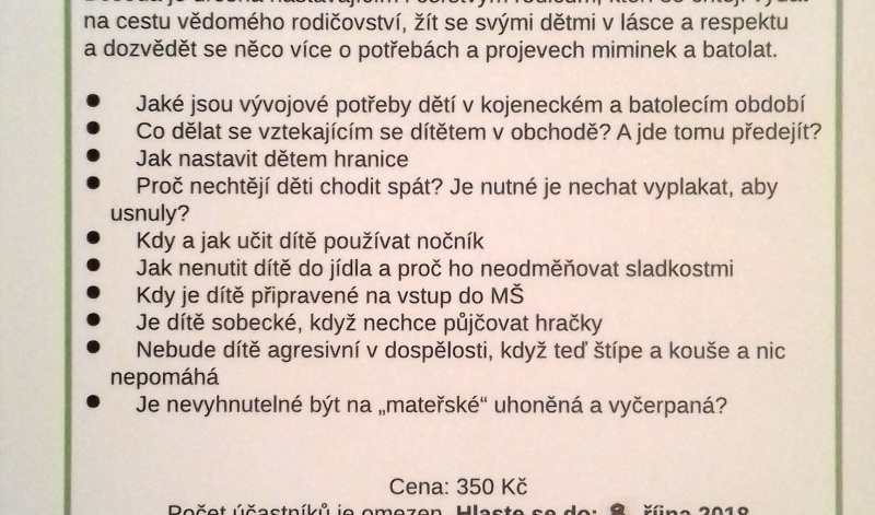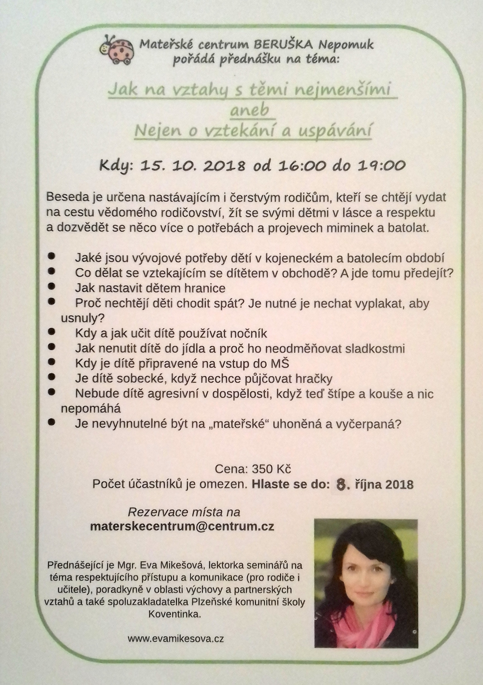 Mateřské centrum Beruška pořádá přednášku Nejen o vztekání a uspávání.