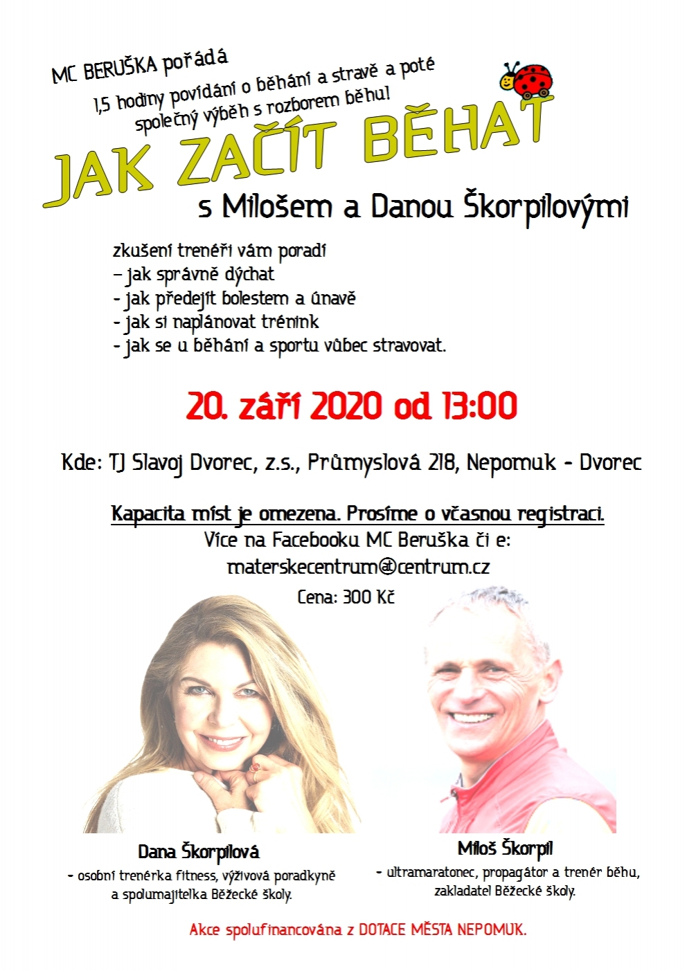 Začít běhat je tak trochu kumšt, vydržet a rozběhnout se pořádně už je opravdové umění. Naštěstí tu jsou zkušení trenéři Dana a Miloš Škorpilovi, kteří vám poradí jak správně dýchat, jak předejít bolestem a únavě, jak si naplánovat trénink a jak se u běhání a sportu vůbec stravovat.