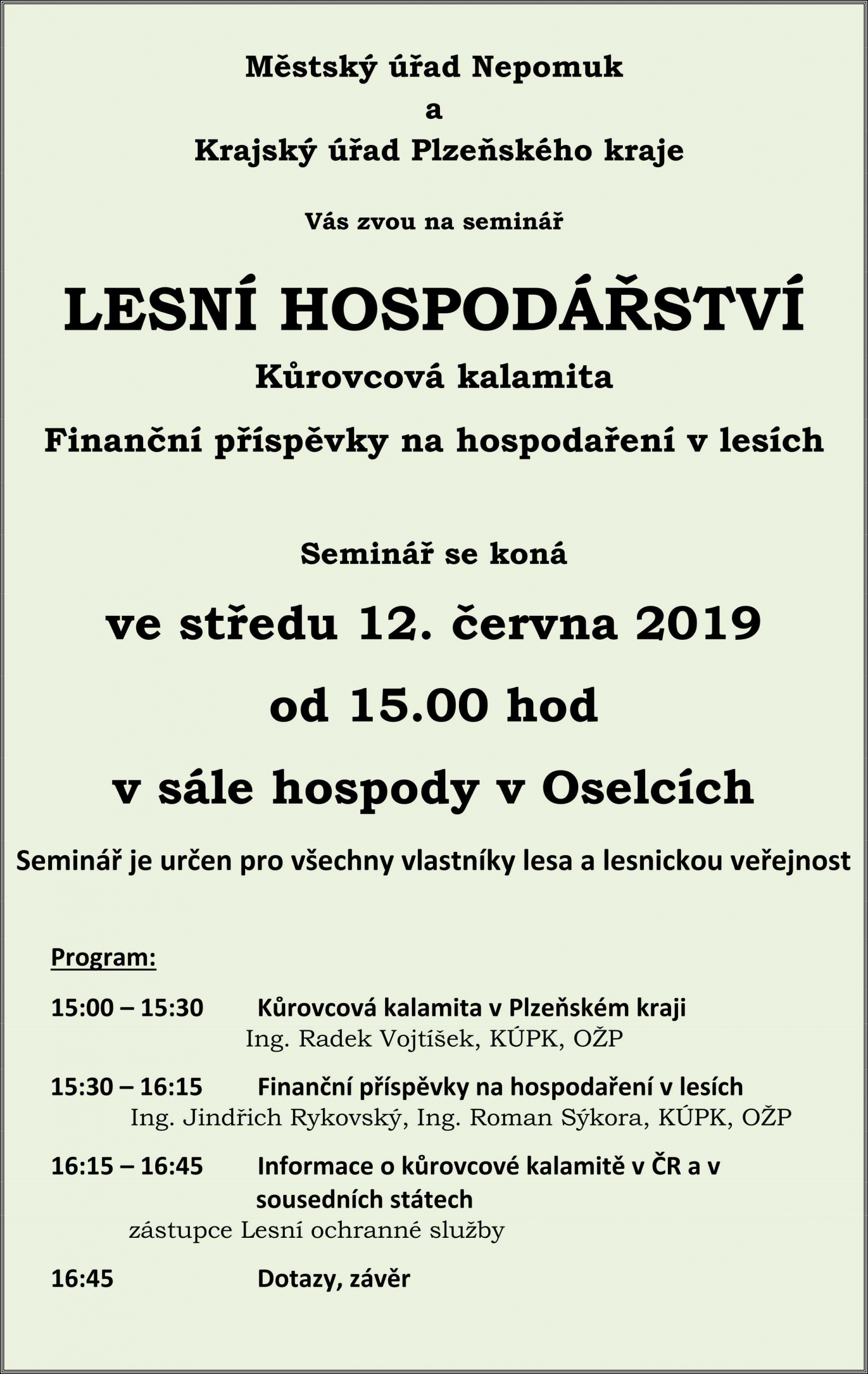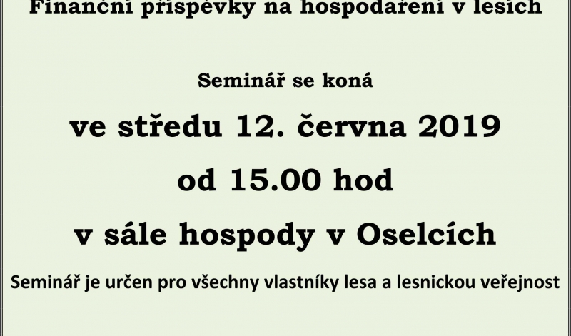 Seminář je určen pro všechny vlastníky lesa a lesnickou veřejnost