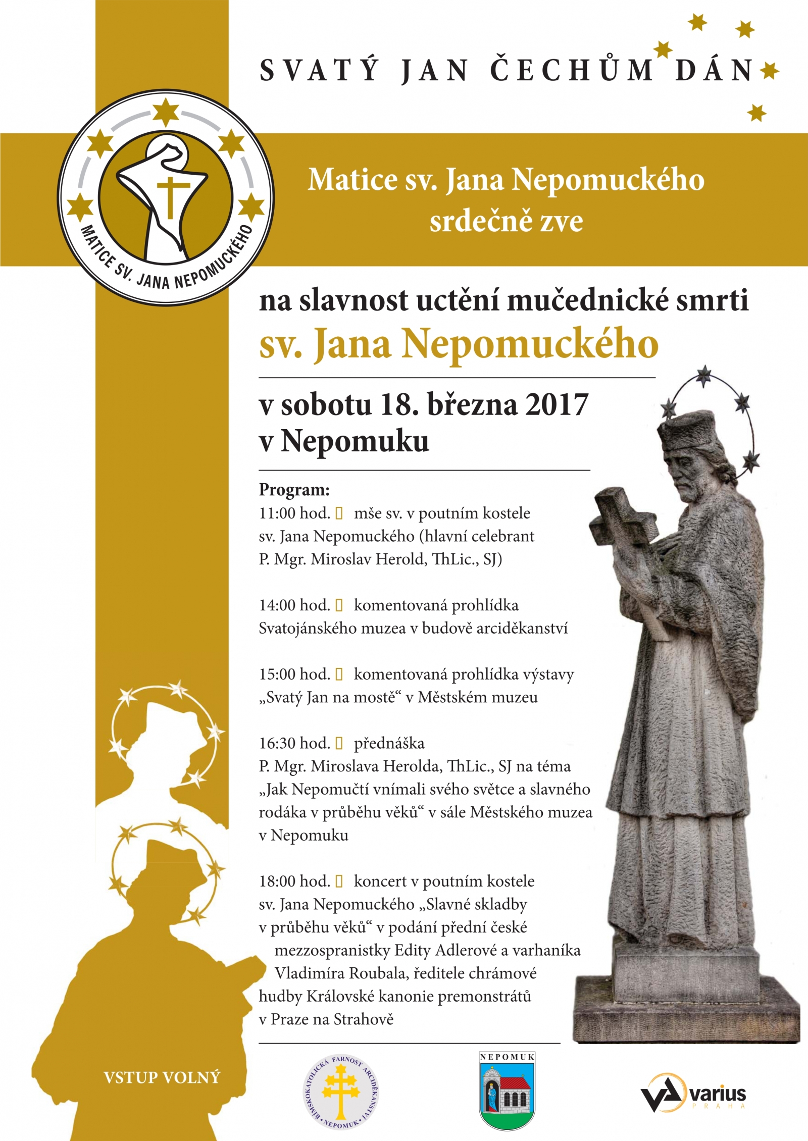 16.30 přednáška P.Mgr. Miroslava Herolda, ThLic.,SJ na téma Jak Nepomučtí vnímali svého světce v průběhu věků