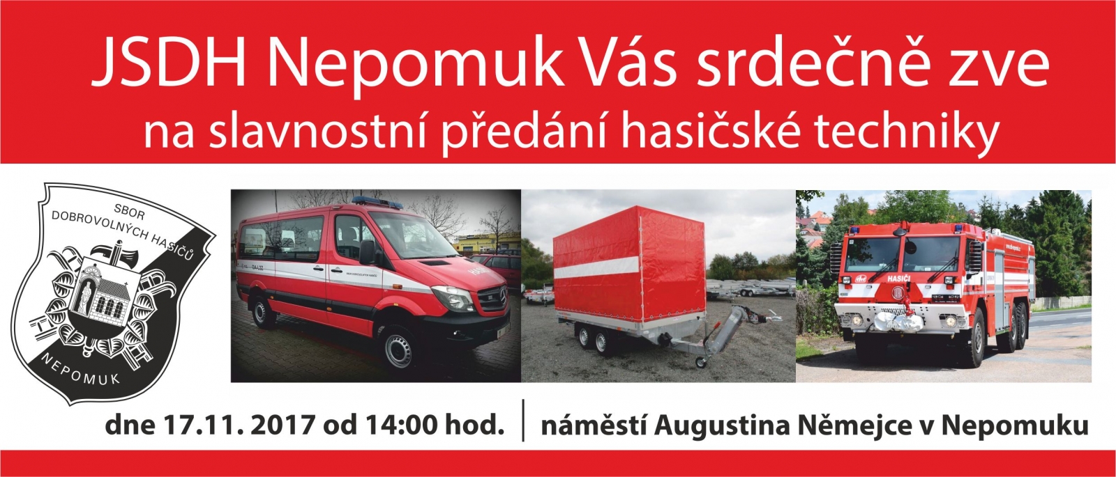 Slavnostní předání zásahové techniky pro SDH Nepomuk
