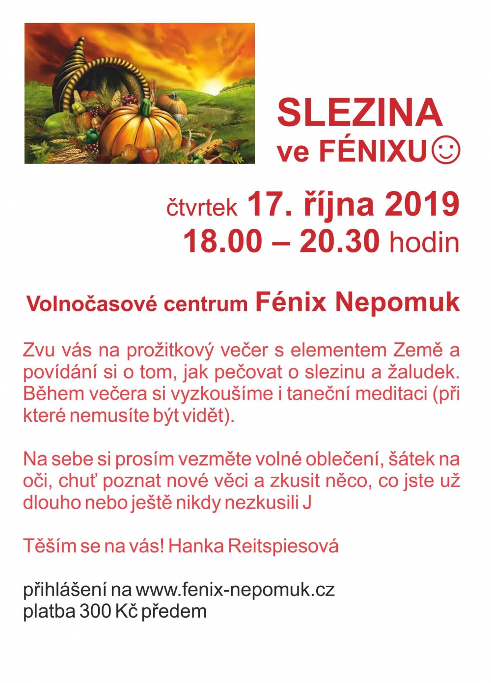 přihlášení na www.fenix-nepomuk.cz a platba 300 Kč předem