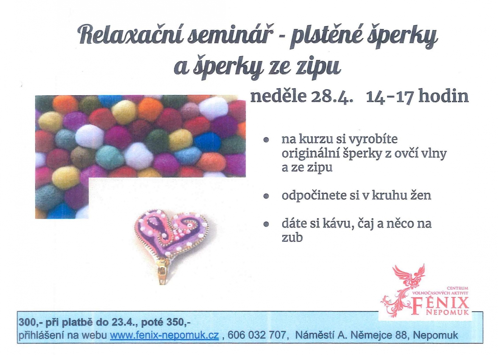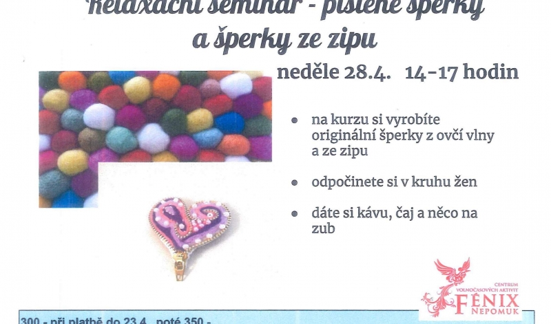 Tvořivý seminář - plstěné šperky z vlny a šperky ze zipu