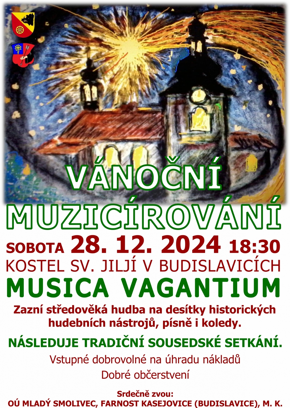 Musica Vagantium - zazní středověká hudba na desítky historických hudebních nástrojů, písně a koledy, následuje tradiční sousedské setkání, občerstvení