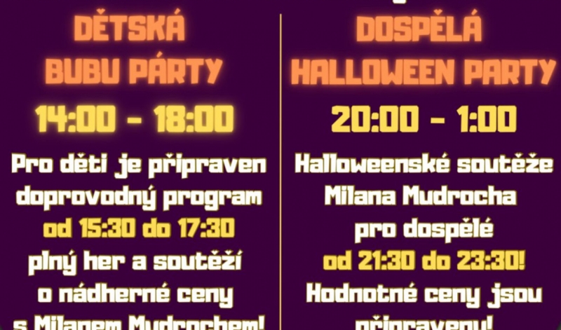 - Od 20.00 do 01.00 hodin Dospělá Halloween party
