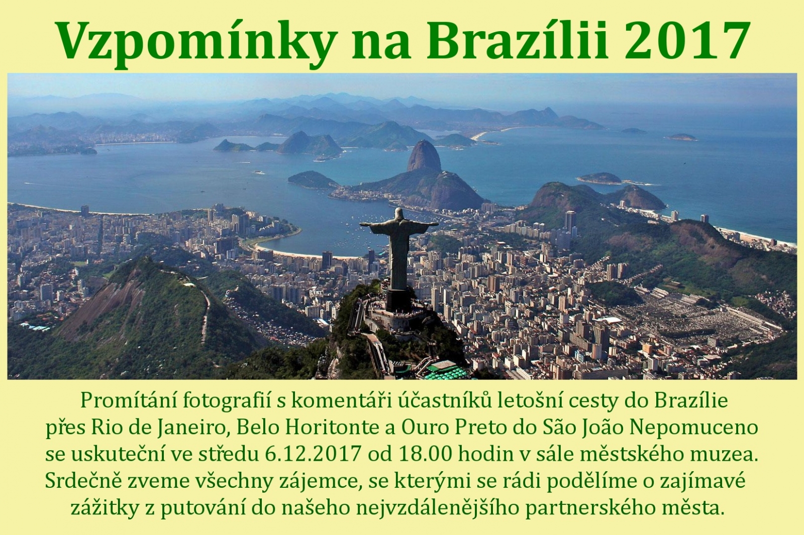 Promítání fotografií s komentáři účastníků letošní cesty do Brazílie.