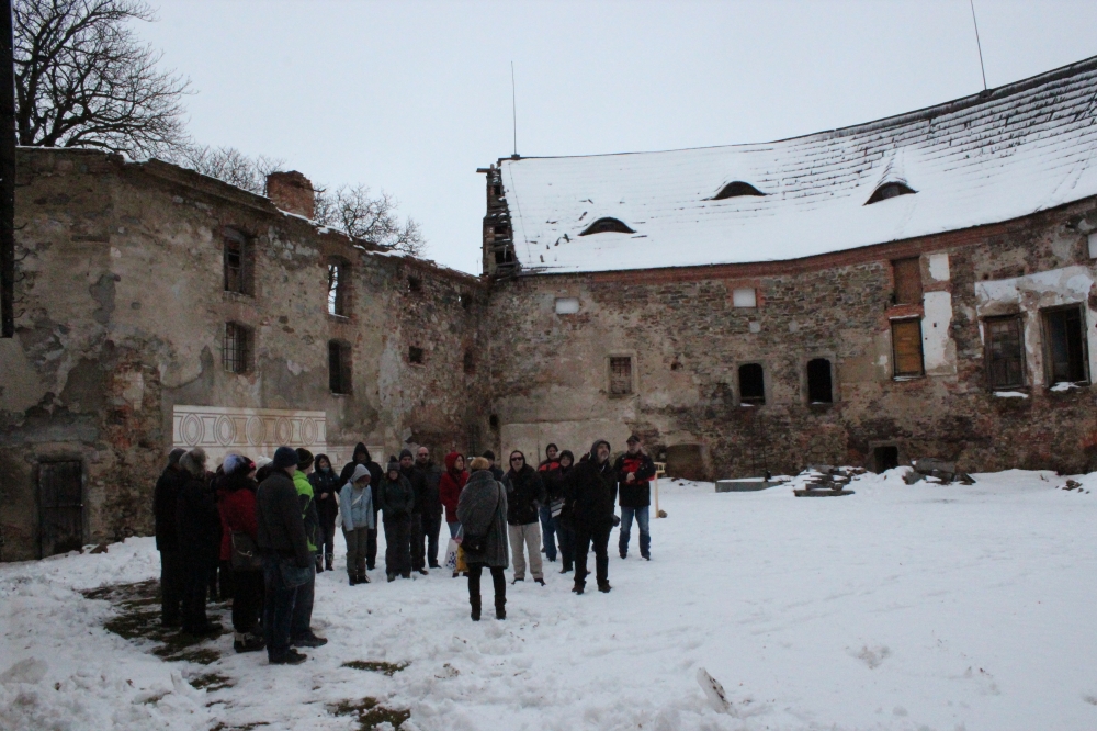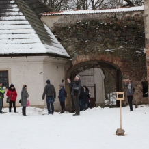 V neděli 13. ledna se pod vedením paní Hany Černohousové z Arciděkanství Nepomuk uskutečnila "přátelská expedice" za poznáním dlouhodobě uzavřeného zámku v Rožmitálu pod Třemšínem. Účastníci výletu, kteří dorazili s předstihem, měli možnost nahlédnout i do starobylého farního kostela Povýšení sv. Kříže ve Starém Rožmitálu. Právě zde poprvé zazněla slavná Česká mše vánoční a dosud zde stojí varhany, na něž na přelomu 18. a 19. století hrával Jakub Jan Ryba. Ten dlouho žil a působil v Rožmitálu jako učitel a hudební skladatel a na hřbitově u zmíněného kostela je i pochován. Milou průvodkyní rožmitálským zámkem, který je v soukromých rukou a stále v dezolátu, byla paní Eva Heyd, ředitelka The Czech National Trust. Mezi Rožmitálem a Nepomukem - potažmo i zámkem Zelená Hora existují zajímavé historické a kulturní vazby - J. J. Ryba prožil dětství právě v Nepomuku, ve staré škole, kde byl jeho otec učitelem. Druhou manželkou krále Jiřího z Poděbrad, který válčil s Jednotou zelenohorskou, byla Johana z Rožmitála. Odbojná katolická Jednota zelenohorská byla roku 1465 ustavena právě na hradu Zelená Hora (pozdější zámek). A páni Lvové z Rožmitála po jistou dobu vládli i v kraji pod Zelenou Horou. Při podrobnějším pátrání by se jistě dalo podobných zajímavostí nalézt více. Po dvouhodinové prohlídce zámku pak lehce zmrzlí, ale jinak spokojení výletníci společně poobědvali v jedné z rožmitálských restaurací. Tato zajímavá výprava zcela jistě nebyla poslední - ať již v roce letošním, nebo v následujících letech.